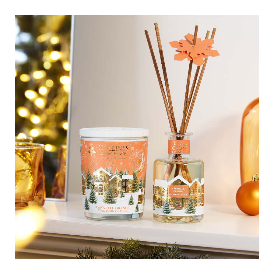 Offrez-vous la magie de Noël avec notre bougie parfumée 180g Cannelle Orange, un mariage chaleureux de cannelle épicée et d’orange gourmande. Coulée à la main en Haute Provence, cette bougie est dotée d’une mèche en bois crépitant et d’un capot céramique décoré aux motifs festifs, pour une ambiance conviviale au parfum doux et épicé de Grasse.