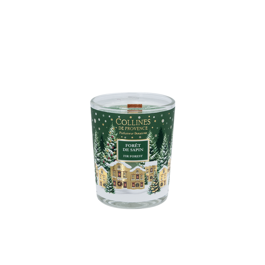 La bougie Forêt de Sapin, aux notes boisées vous plongent au cœur d’une forêt de conifères, elle a été formulée par nos parfumeurs à Grasse, capitale mondiale de la parfumerie. Délicatement coulée à la main et dotée d’une mèche bois qui crépite pour nous rappeler le doux chant de l’âtre, elle est ornée d’un écrin féérique : la douce lumière de Noël diffuse ses rayons magiques à travers les fenêtres du village provençal... Un conte merveilleux qui ravira petits et grands…