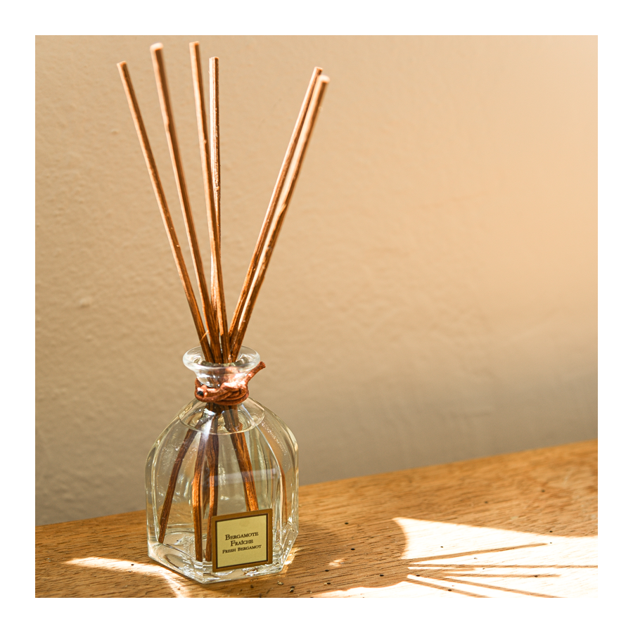 Laissez-vous charmer par notre Bouquet Parfumé Bergamote Fraîche, ses tiges de rotin naturelles diffusent en continu les notes aromatiques de cet agrume. Le Bouquet Parfumé Bergamote Fraîche vous fait découvrir les senteurs du Sud de l’Italie grâce à sa fragrance pétillante et délicate.