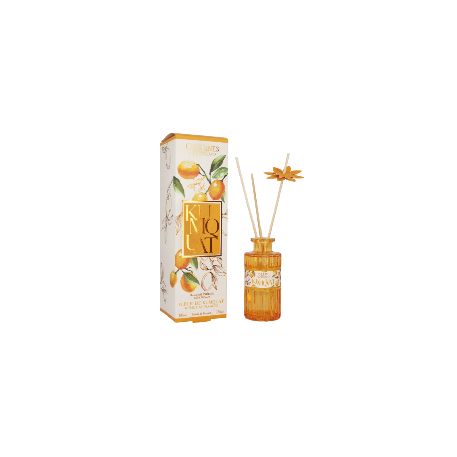 Bouquet parfumé Fleur de Kumquat, une fragrance hespéridée fruitée aux notes d’orange, mandarine et kumquat pour parfumer votre intérieur.