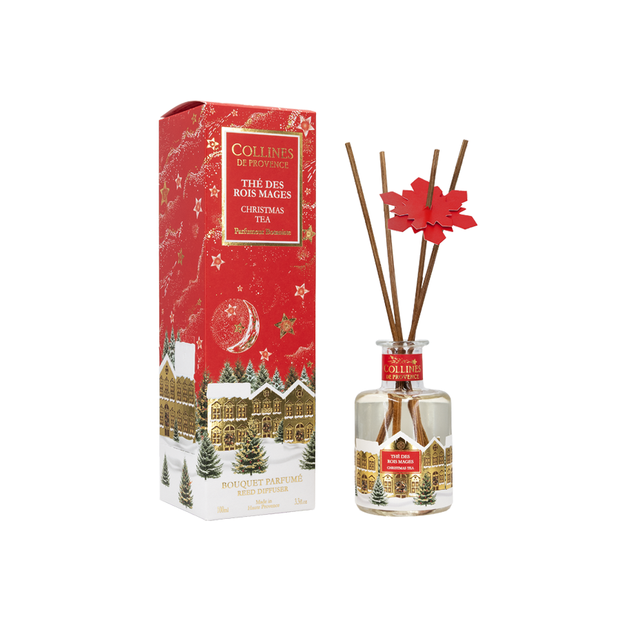 Découvrez le parfum envoûtant du Thé des Rois Mages, une senteur douce et épicée parfaite pour les nuits d'hiver. Présenté dans un étui cadeau décoré, ce bouquet parfumé prêt à offrir est une invitation au voyage olfactif, entre mystère et tradition, dans l’esprit des fêtes de Noël.