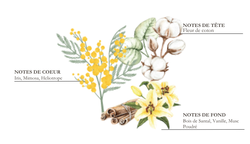 Note de Cœur : Iris, Mimosa, Héliotrope