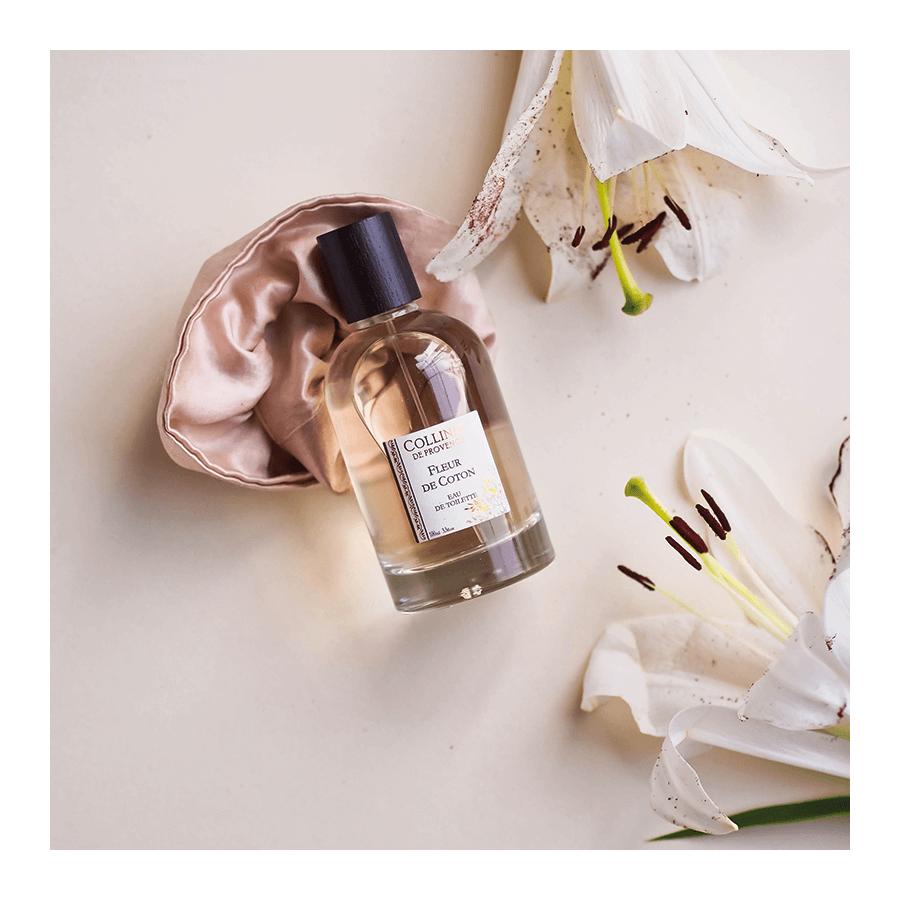 Das reine und feine Eau de Toilette Baumwollblüteaus dem Zusammentreffen feiner weißer Blumen und reiner Baumwolle. Ein sanfter und unvergänglicher Duft.