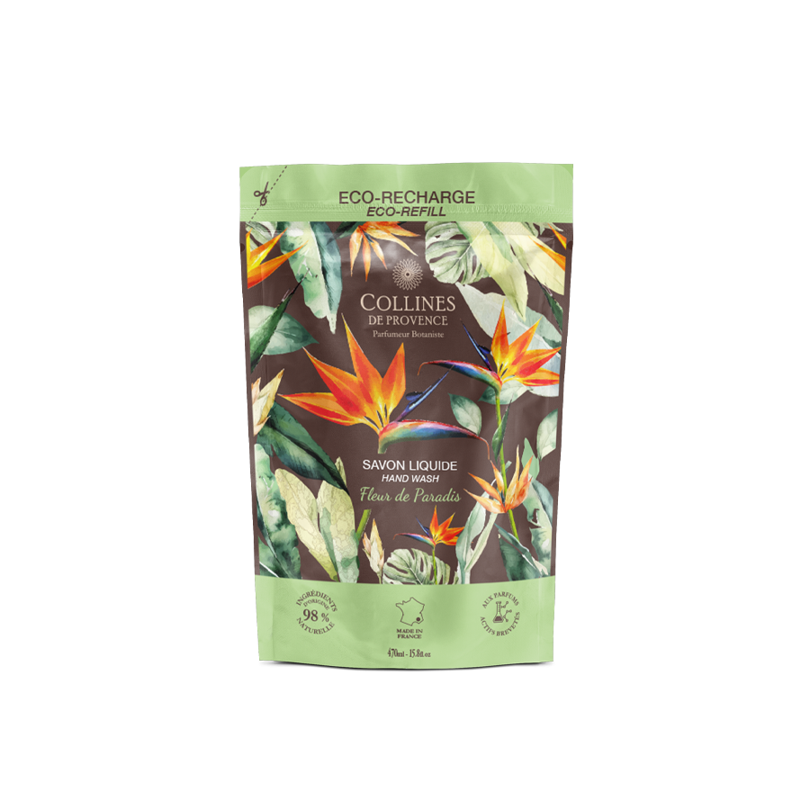 Die Öko-Nachfüllung Paradiesblume pflegt Ihre Haut sanft mit einer Formel aus 97 % Inhaltsstoffen natürlichen Ursprungs.