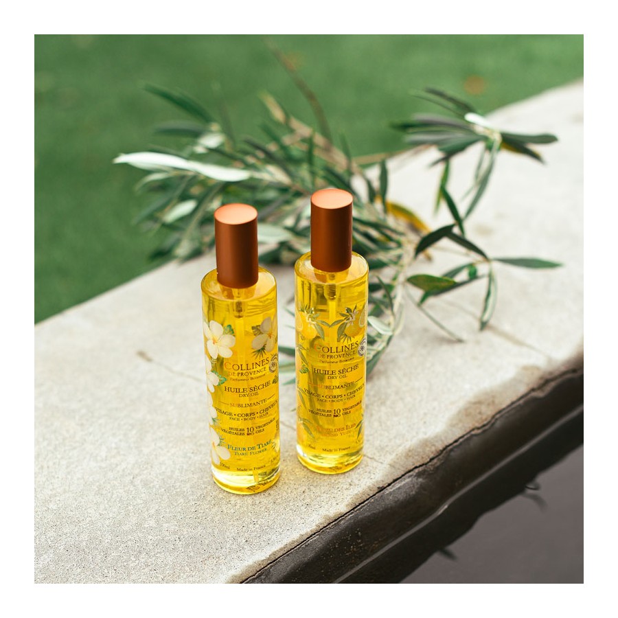Das sublimierende Trockenöl macht die Haut geschmeidig und verleiht dem Haar Glanz. Besteht zu 82 % aus biologischen Pflanzenölen: