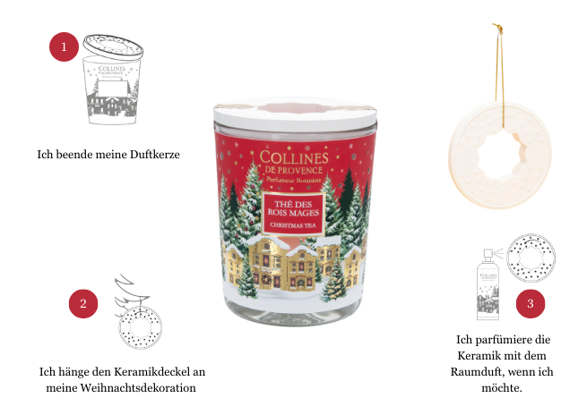 Entdecken Sie die neue Weihnachtskerze Thé des Rois Mages, handgegossen in unseren Werkstätten in der Haute-Provence: