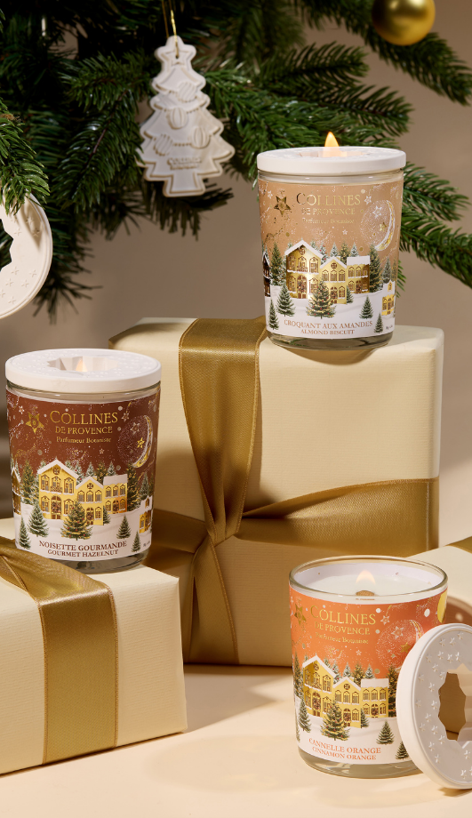 Découvrez l’univers Collines de Provence et ses bougies parfumées, parfums d’intérieur et senteurs d’intérieur aux multiples facettes : des créations artisanales, naturelles et inspirées par l’art de vivre en Provence pour un Noël parfumé inoubliable.