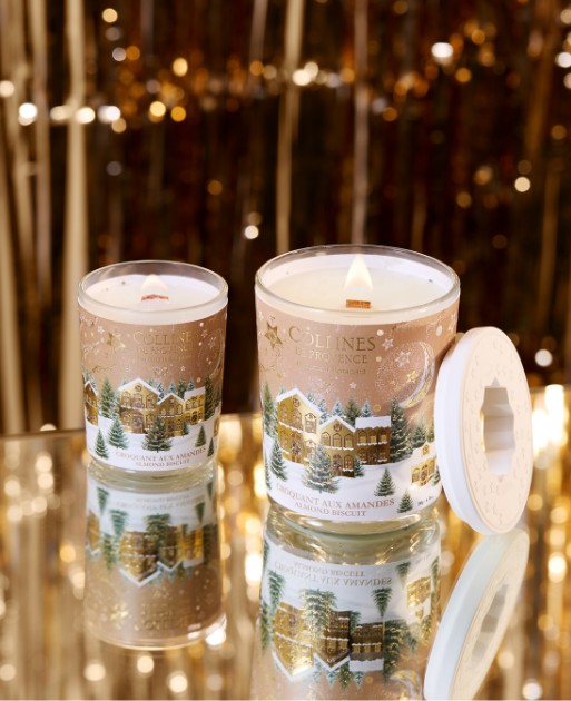 Offrez à votre maison toute la magie de Noël avec les bougies parfumées Collines de Provence, conçues avec soin et dotées de mèches en bois pour une combustion naturelle et un crépitement apaisant.