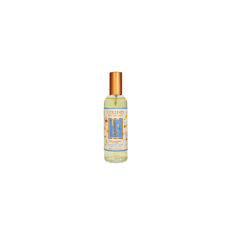 Parfum d’intérieur Fleur de Tiaré, une senteur florale solaire aux notes de coco, fleurs blanches et vanille pour créer une ambiance chaleureuse.