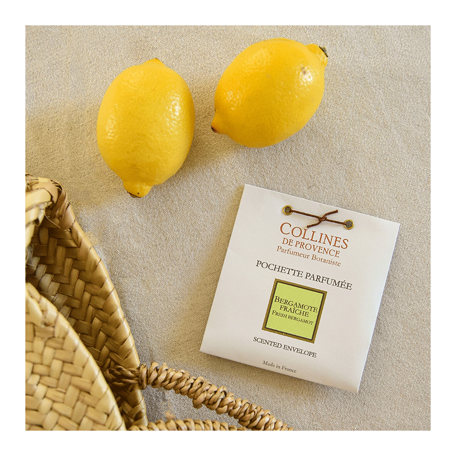 Découvrez la senteur pétillante et rafraîchissante de la pochette parfumée Bergamote Fraîche, fabriquée à la main dans notre manufacture au cœur des collines, en Provence. Son parfum aux notes fraîches et citronnées parfumera délicatement vos tissus, votre linge et vos armoires.