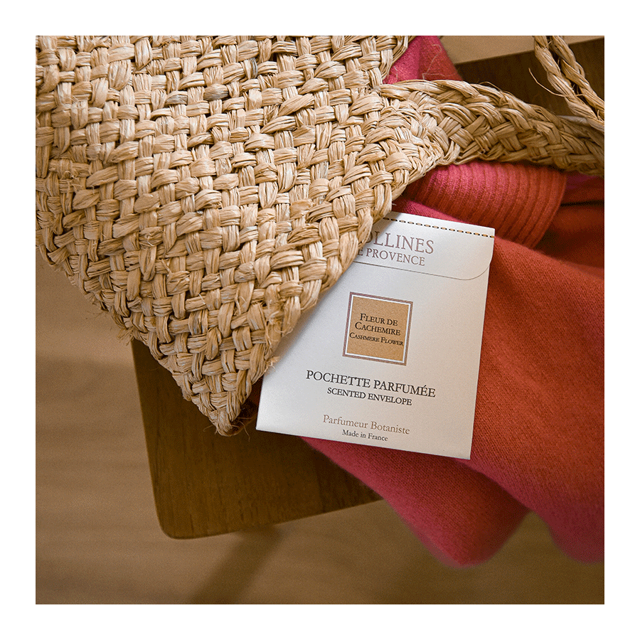 Découvrez la parfum floral et poudré de la pochette parfumée Fleur de Cachemire, confectionnée au cœur des Alpes de Haute-Provence dans le village de Mane. Sa fragrance aux notes douces et poudrées parfumera agréablement votre linge, vos armoires, tiroirs et sacs à main.