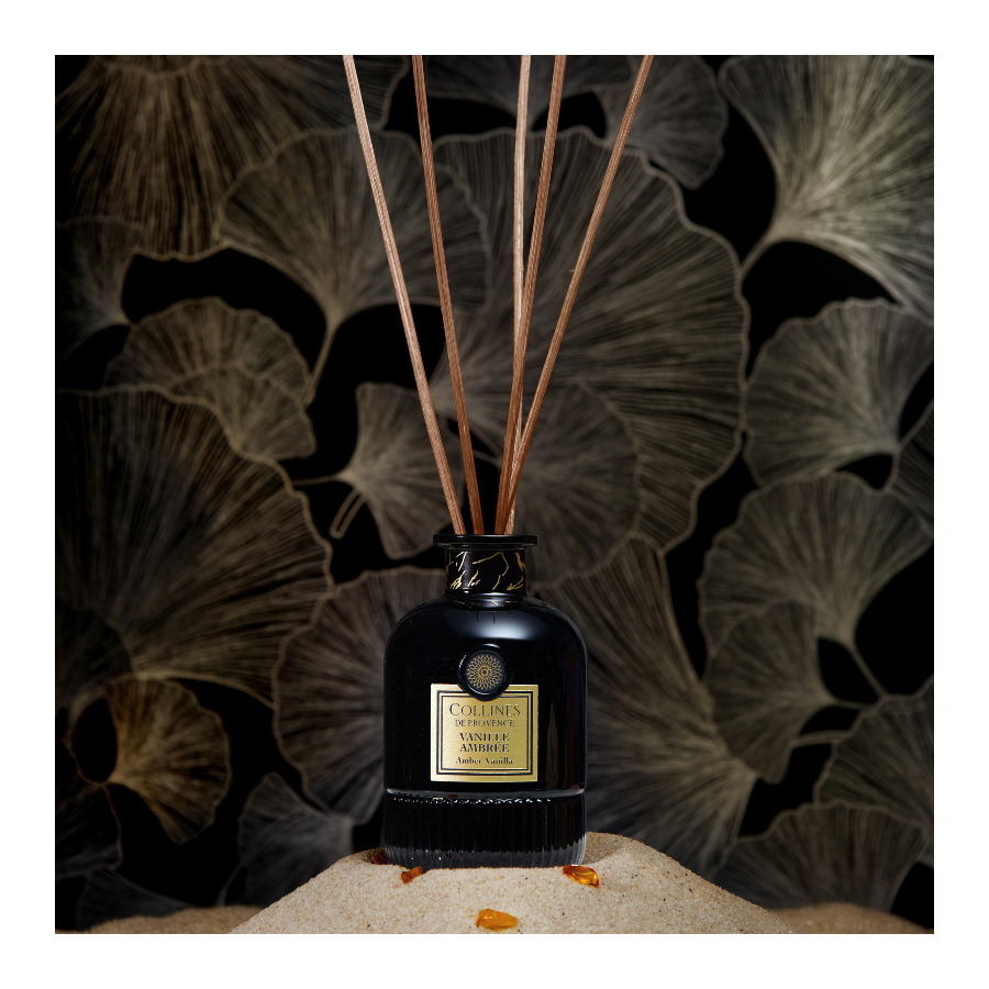 Discover our Amber Vanilla scented bouquet, with gourmand and amber notes, for a soft and continuous diffusion. A home fragrance crafted by hand in our workshops in Haute-Provence.