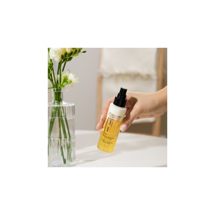A hydrating Body & Hair mist, delicately scented and alcohol-free, for both body and hair, made with 97% natural origin ingredients.