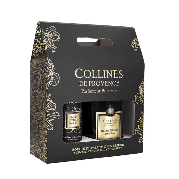In a deep black box, enhanced with delicate golden hot-foil details, lie a candle and a home fragrance in our signature Black Rose scent. A refined and captivating duo, imbued with elegance and mystery — perfect for gifting.