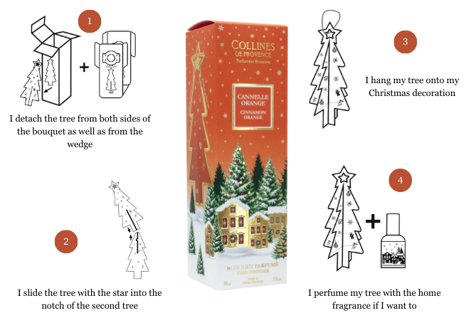 The Christmas Cinnamon Orange Scented Bouquet comes dressed in a gift box, a delicate attention to place under the tree: Made in Haute-Provence Fragrance from Grasse A scented gift ready to give A magical decoration evoking the sweet nights of Christmas