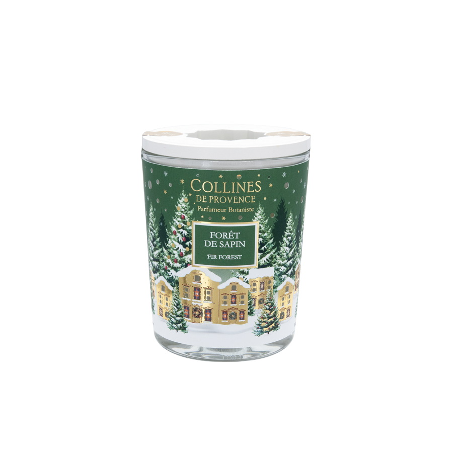 Discover the Christmas ‘Forest Pine’ Scented Candle crafted in our workshops in Haute Provence: Hand-poured candle Fragrance from Grasse A wooden wick that crackles like a fireplace Ceramic lantern lid Sparkling Christmas village