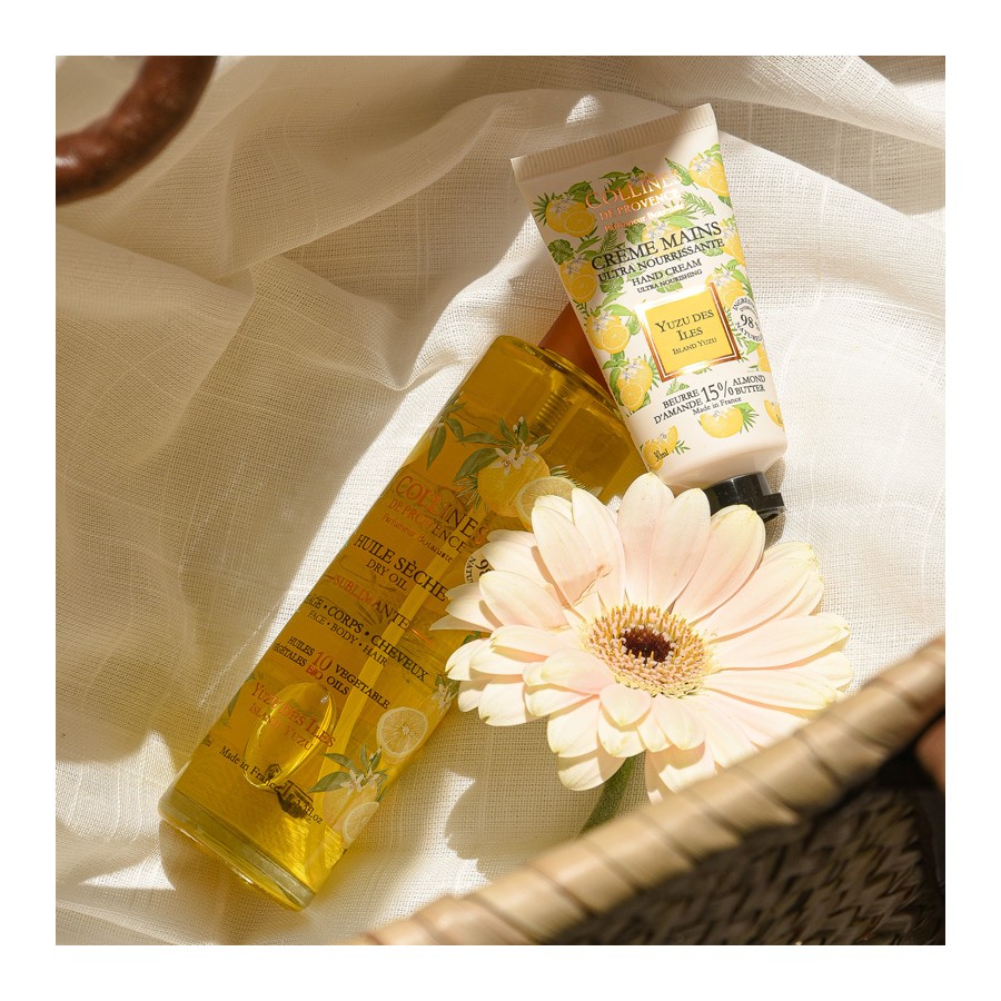 Discover the Island Yuzu Collines de Provence Hand Cream. This solar and captivating scent invites you on a paradisiacal journey !