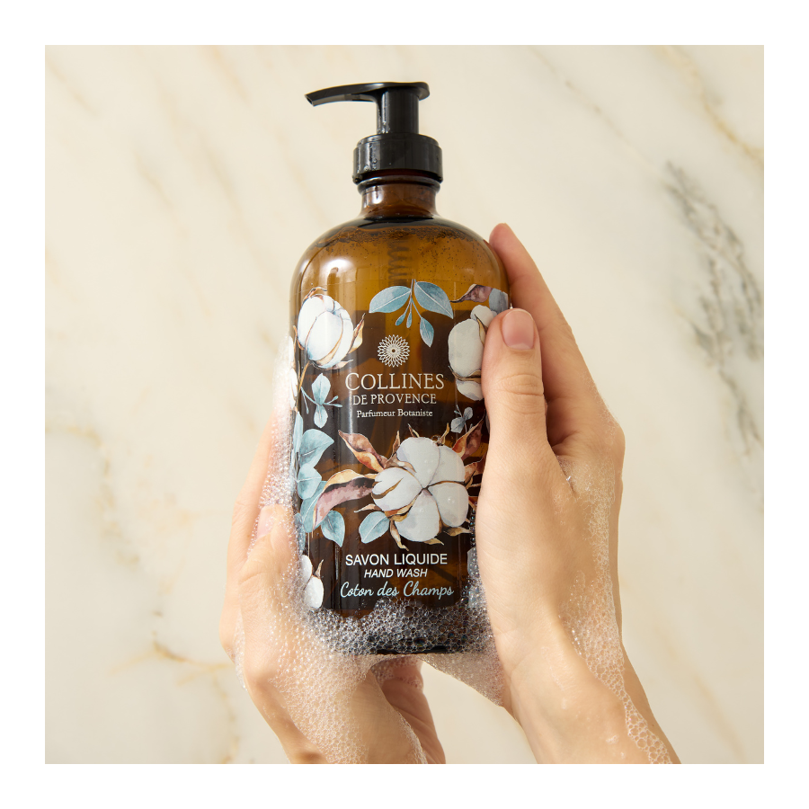 The Liquid Soap Cotton Fields gently cleanses the skin, with a formula enriched with 98% natural-origin ingredients, combining vegetable oils and Sweet Almond extract for a gentle and respectful care