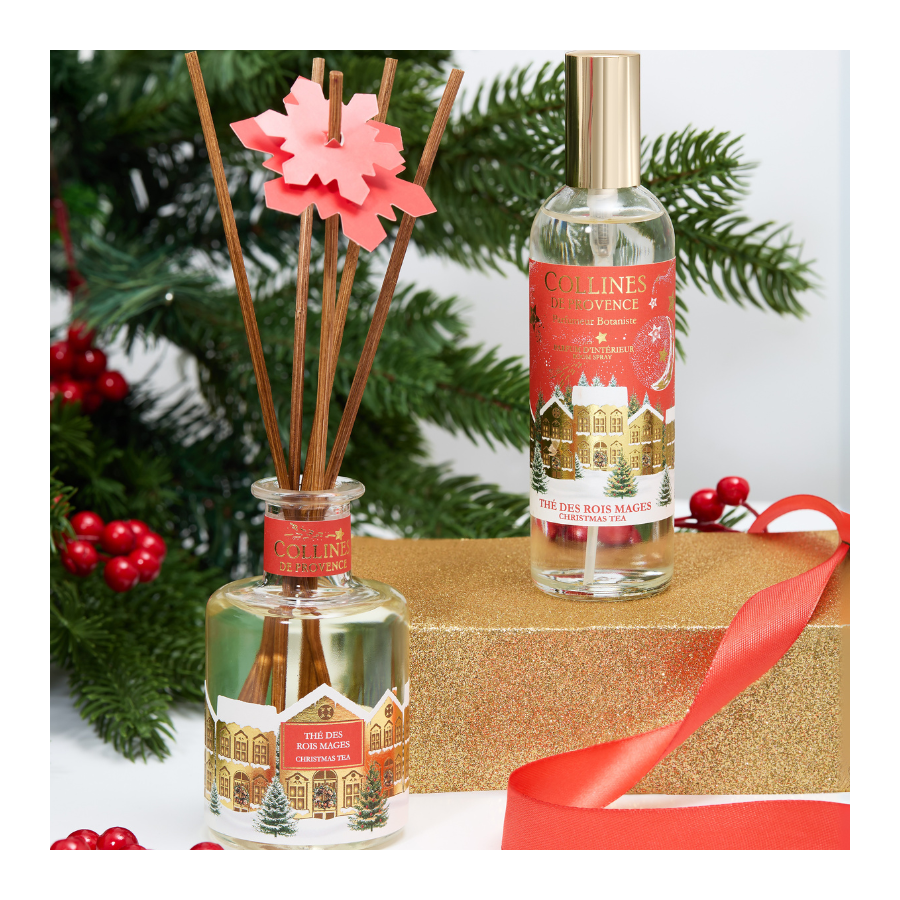 Discover the enchanting fragrance of Thé des Rois Mages, a sweet and spicy scent perfect for winter nights. Presented in a decorated gift box, this ready-to-give scented bouquet is an invitation to an olfactory journey, between mystery and tradition, in the spirit of Christmas celebrations.