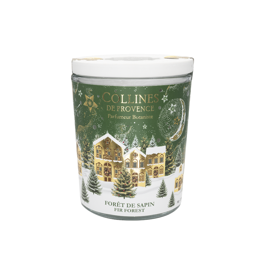 Discover the 360g Forêt de Sapin scented candle, hand-poured in our workshops in Haute Provence. With its fragrance from Grasse, it recreates the atmosphere of snow-covered, fresh Christmas forests. Its wooden wick crackles like a log fire, and its ceramic lid, decorated like a Christmas village, adds a sparkling, warm touch.