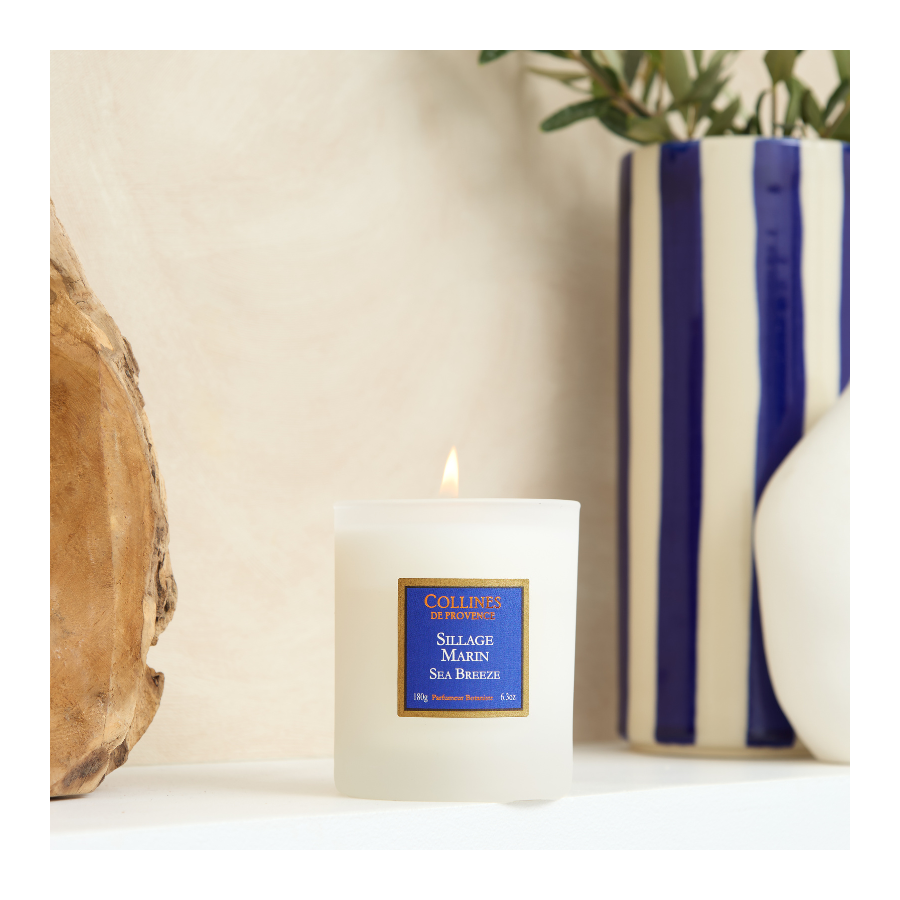 Discover our Sillage Marin scented candle with marine and aromatic notes, handcrafted in our workshops in Haute-Provence.