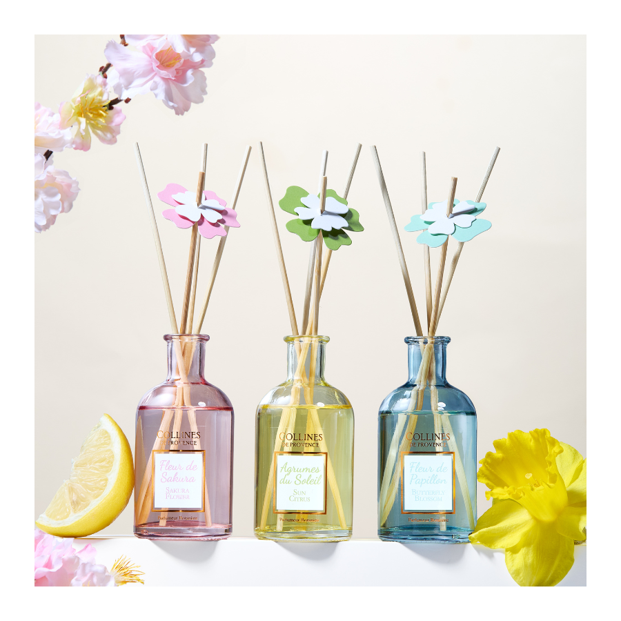 Let yourself be seduced by our Sun Citrus scented bouquet, a sparkling fragrance with hesperidic and fruity notes. Handcrafted in our workshops in Haute-Provence, it fills your home with a fresh and invigorating ambiance.